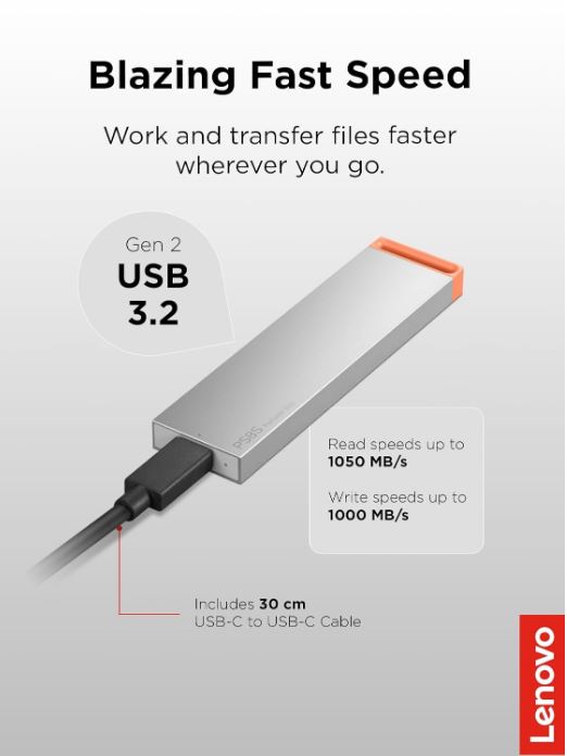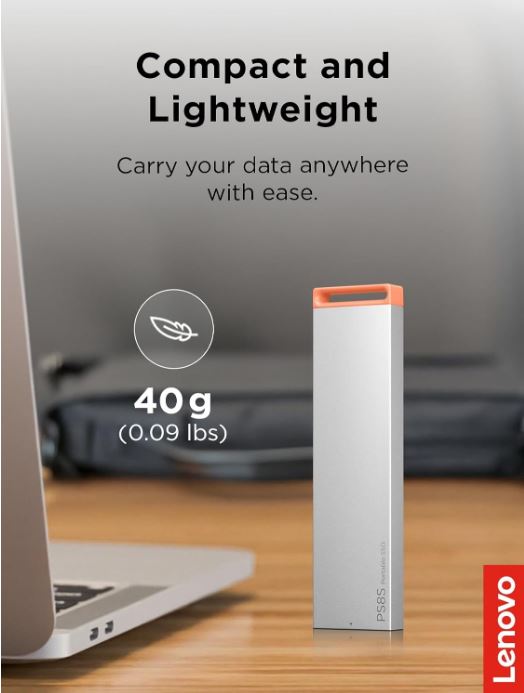 Lenovo PS8S 1TB External Portable SSD ~1050MB/s USB3.2 Gen2 USB-C Stylish Metal Body Lightweight 40g Durable for PC MAC PS4 Xbox Android iPad Pro