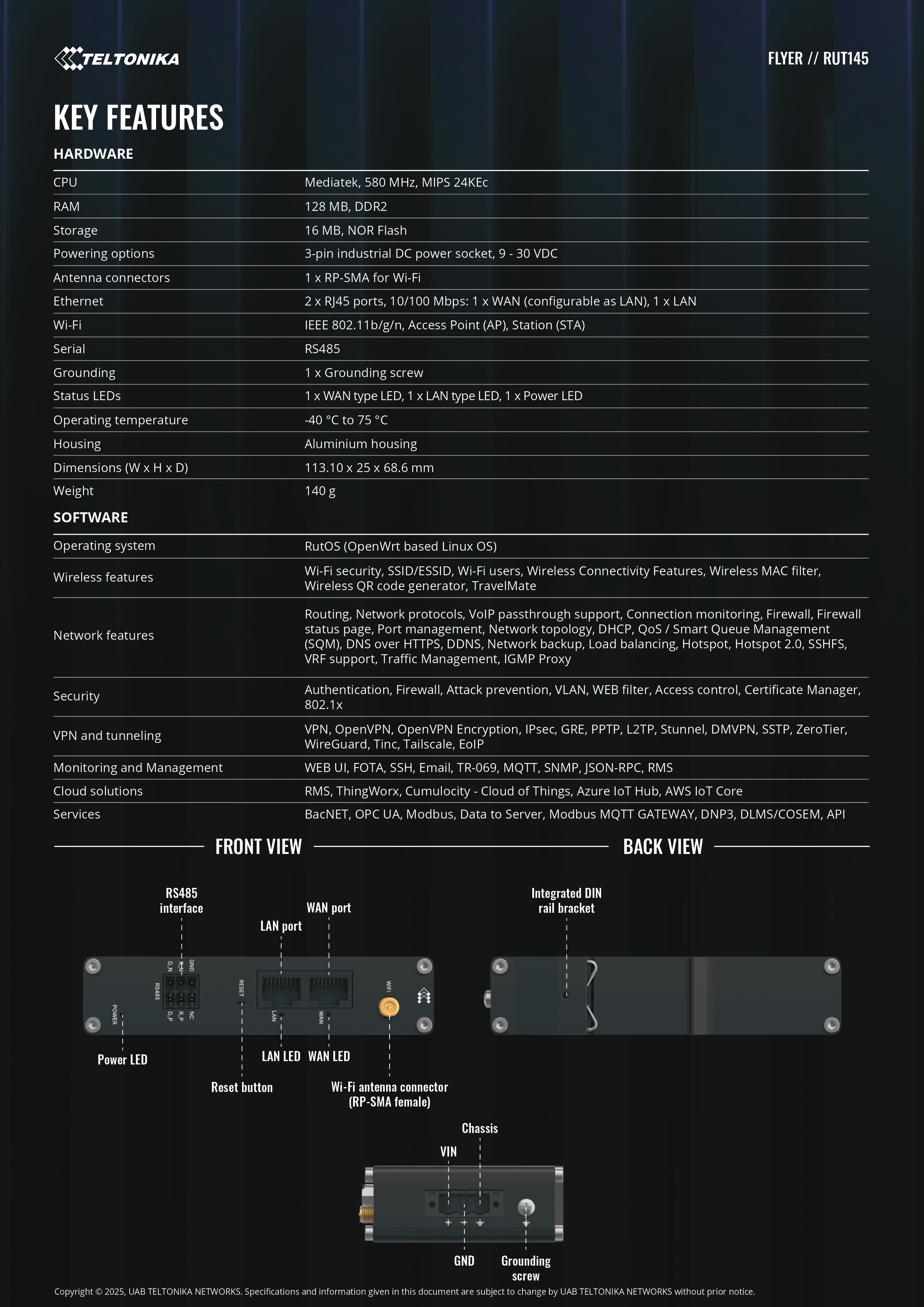Router RUT145 3-pin power connector 2×3 Pin Connector QSG (Quick Start Guide) Packaging box
