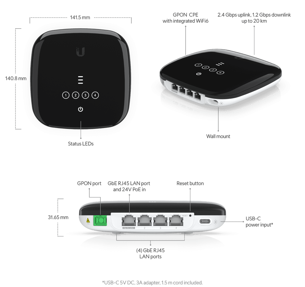 Note: This device is only compatible with the UFiber OLT. It cannot be used with third-party OLTs.