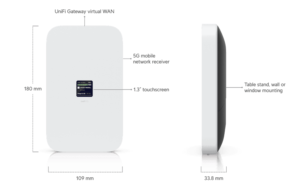 A high-performance 5G (3.4 Gbps) modem for any Unifi deployment. Instantly adopt through any UniFi PoE port, it delivers automatic setup, dual SIM/eSIM, and seamless failover.